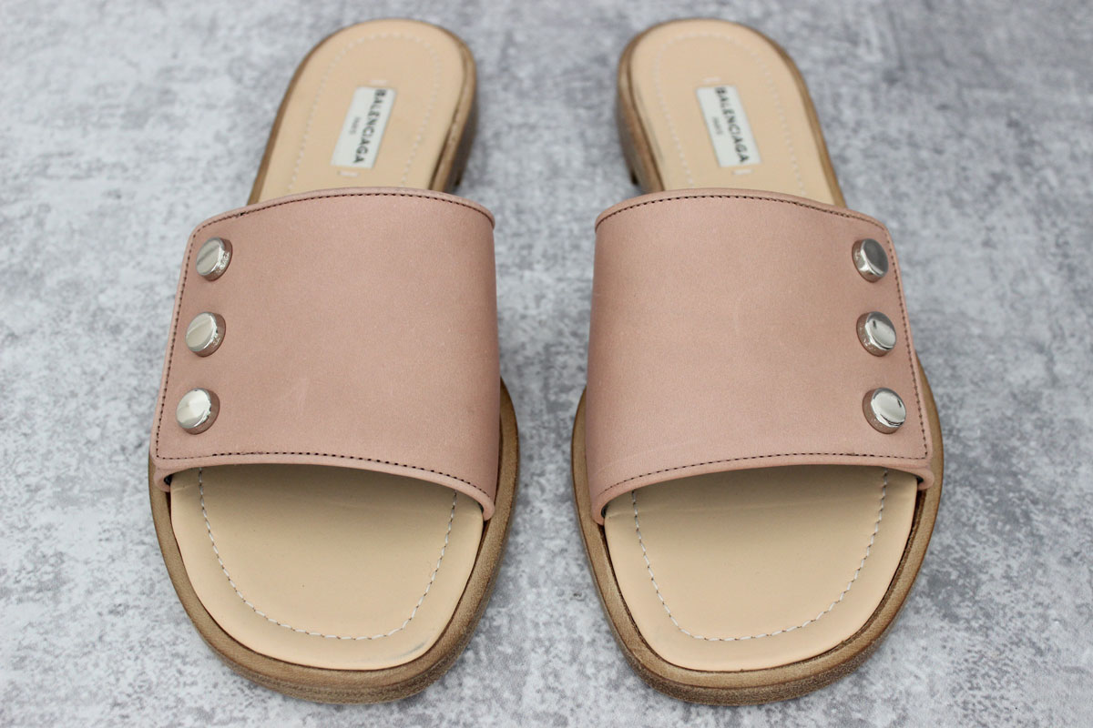 Balenciaga Blush Studded Leather Slides