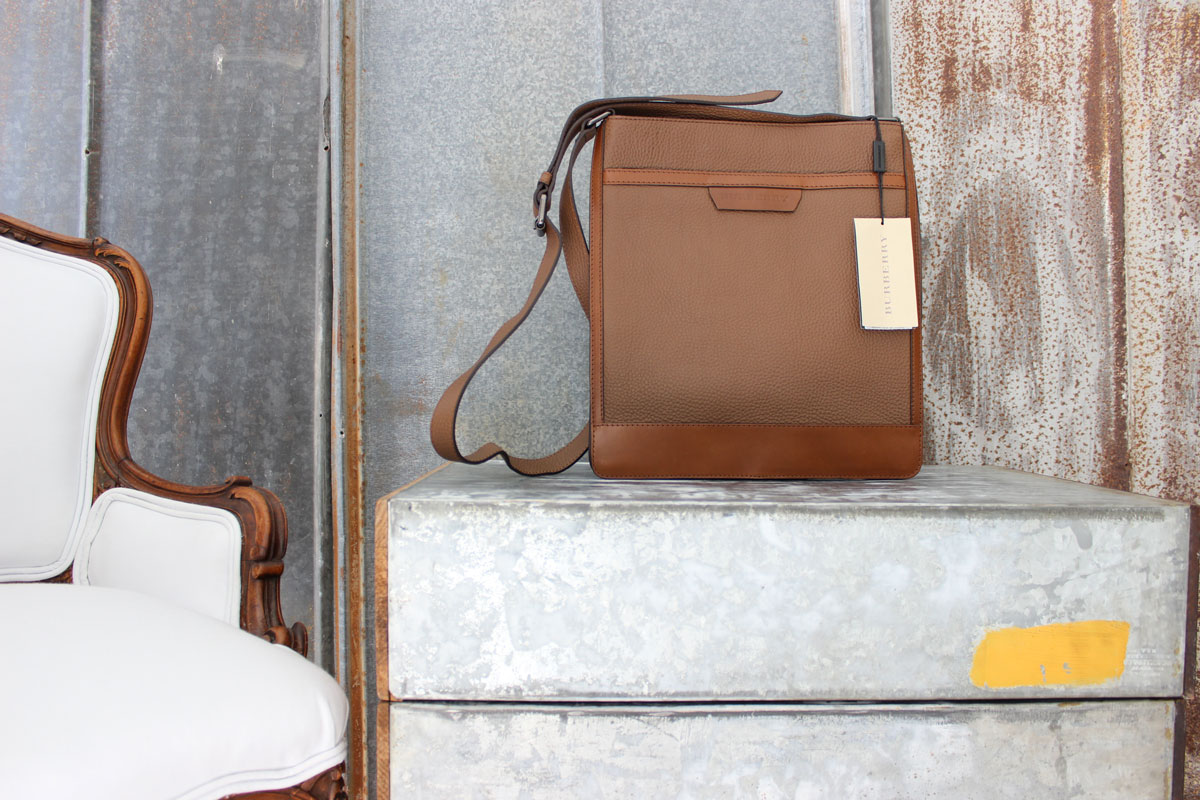 Burberry Men’s MALLOW Cross-Body Bag in Mushroom Leather. This bag is brand new with tags. No dust cover. Elongated, flat design in mushroom pebbled leather with darkened silver-tone hardware. Adjustable cross body strap, front pocket with hidden magnetic closure and zip top. Burberry signature woven lining with zippered pocket and two flat pockets. Made in Romania. Measures 11.5″ x 12.75″. Brand new. No dust cover. Retail was $1095 + tax.