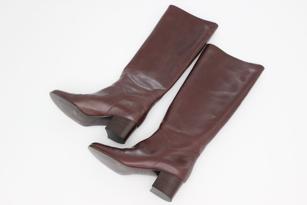 Chanel Brown CC Logo Knee High Riding Boots