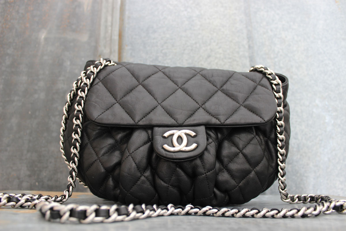 Chanel Black Quilted Washed Lambskin ‘CHAIN AROUND’ Crossbody Messenger