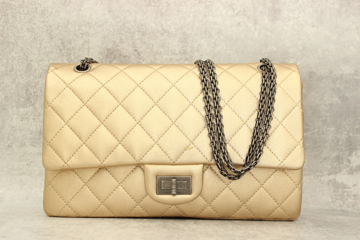 Chanel Metallic Gold Quilted Calfskin 255 Reissue 227 Double Flap Bag