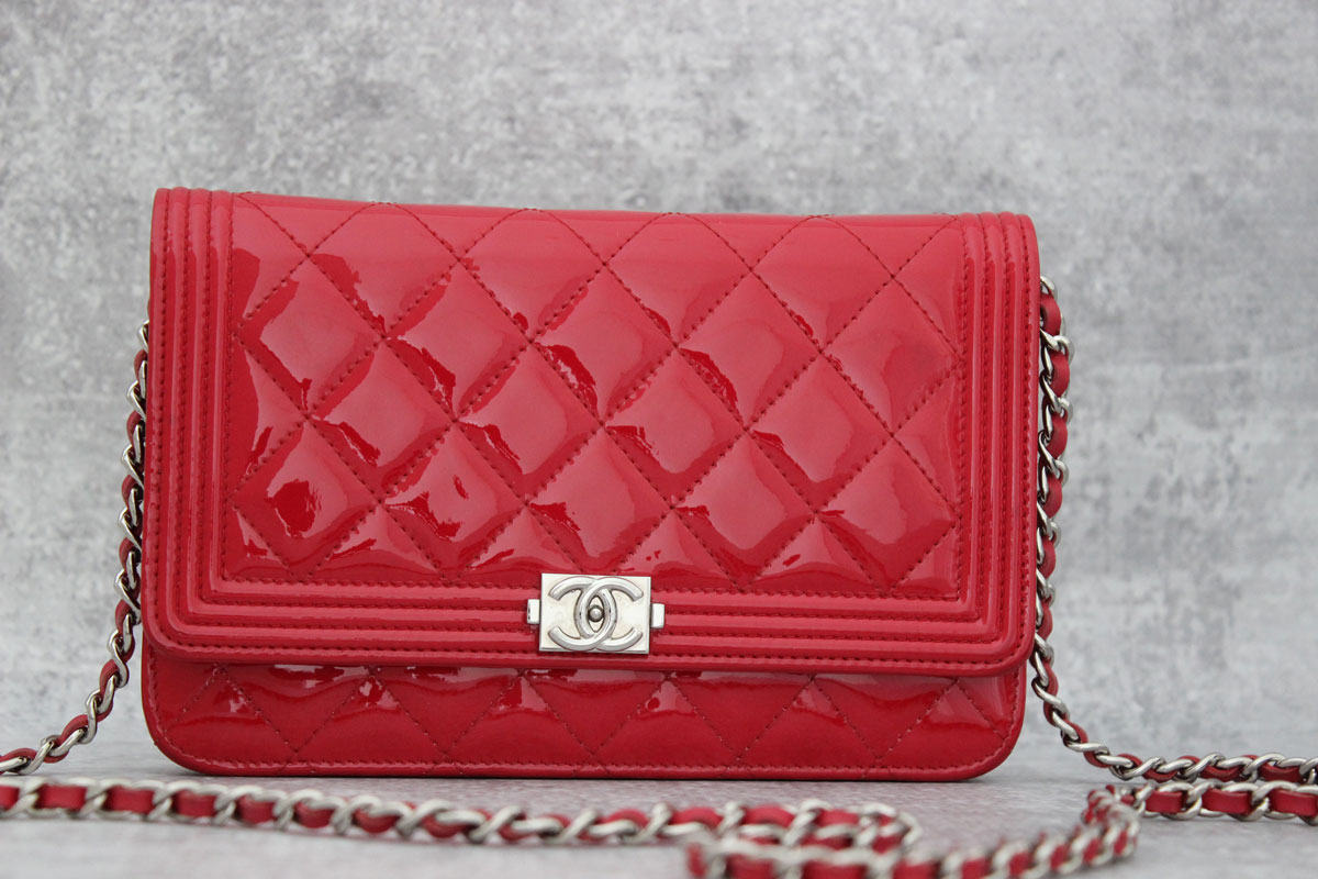 Chanel Patent Leather Boy Wallet On Chain Red