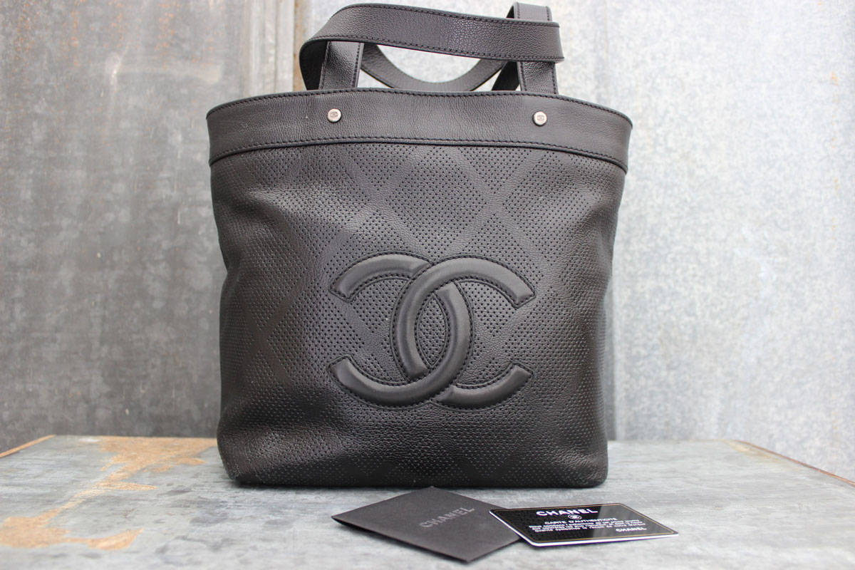 Chanel Black Perforated Leather CC Petite Shopping Bag