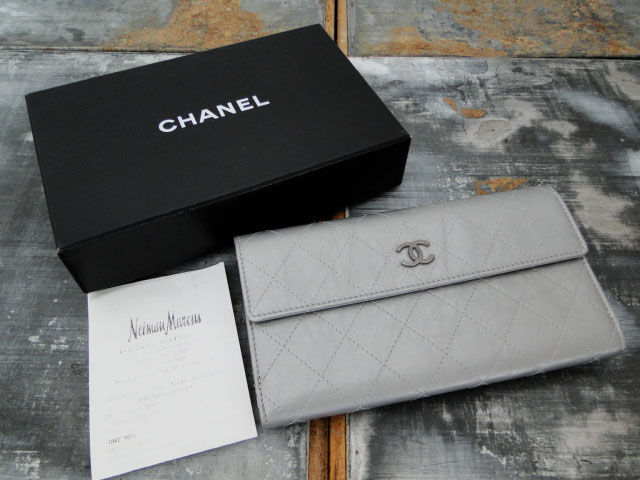 Chanel Silver Lambskin Long Wallet