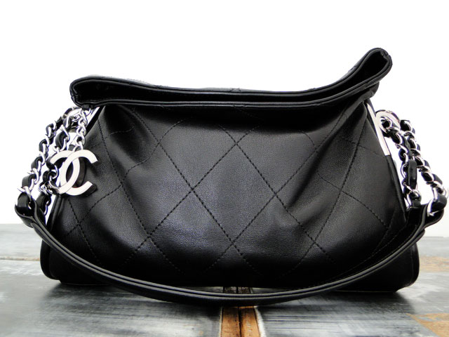 Chanel ULTIMATE SOFT black lambskin CC charm shoulder bag. This bag is in MINT, PRISTINE, NEAR FLAWLESS condition and comes with dust cover. There is a small surface scratch on the back. Otherwise, perfect including perfect, rub-free corners. Hologram/Authenticity: 11038215. Made in Italy. Measures 9.75″ x 7″ (when top folded down) x 3″. Black Chanel woven lining with zippered pocket. Dangling CC zipper pull and Chanel engraved polished silver-tone hardware.
