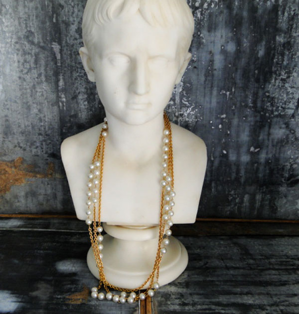 Chanel Vintage Necklace Belt Gold Chain & Costume Pearl 35″