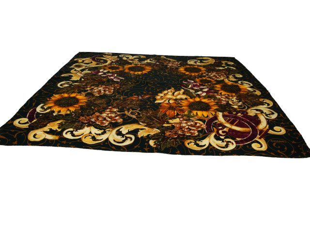 Chanel vintage sunflower scarf 35″. Care label has come off. Scarf is in EXCELLENT condition.