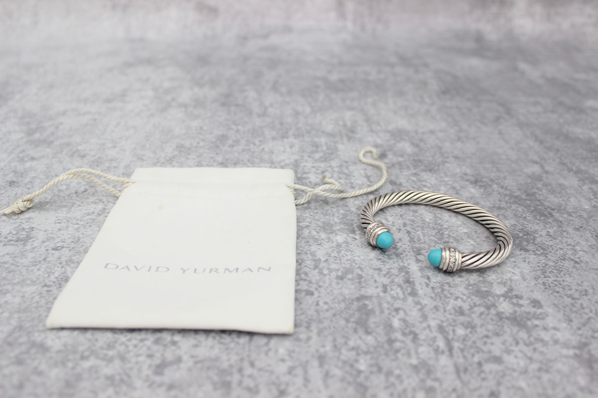 David Yurman 7mm Turquoise & Pave Diamond Cable Classics Bangle. Excellent with pouch.