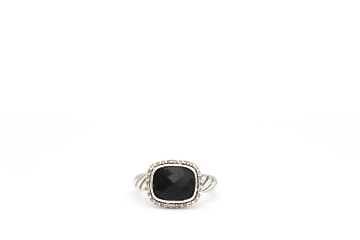 David Yurman Black Onyx and Diamond Cable Ring