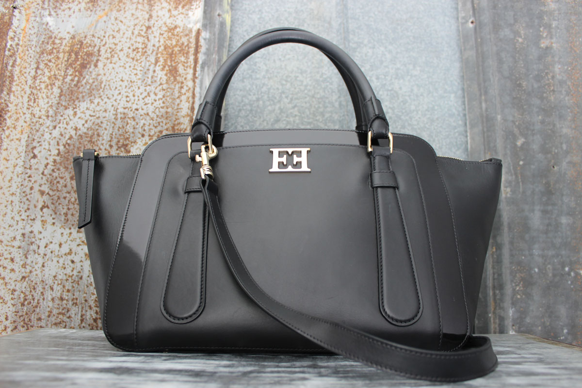 Escada Smooth Saffiano Leather TRAPEZE Bag Black