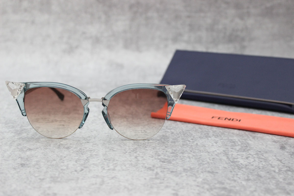Fendi 0041 Iridia Blue Glam Cat Eye Sunglasses