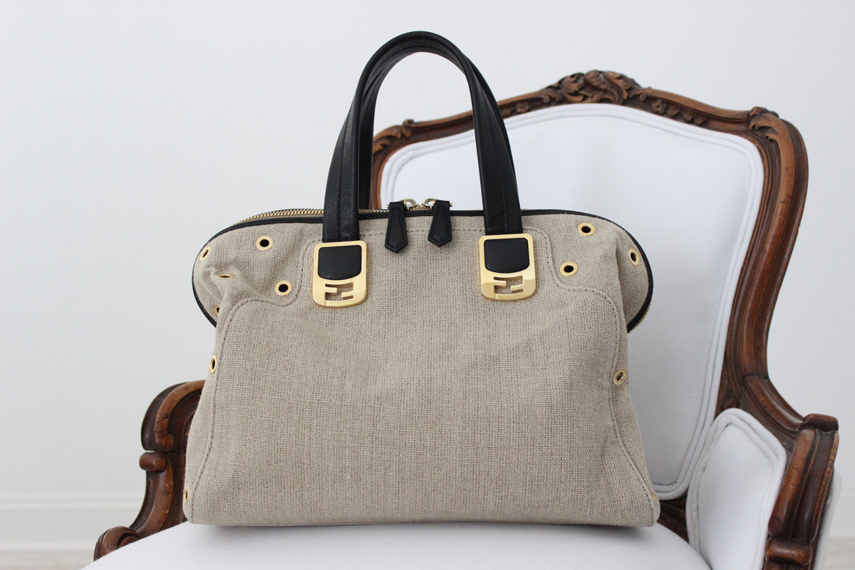 Fendi Linen Chameleon Satchel with Rivets