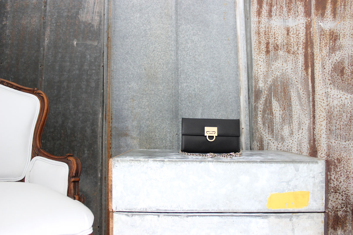 Ferragamo Black Textured Saffiano Leather Crossbody Bag Clutch