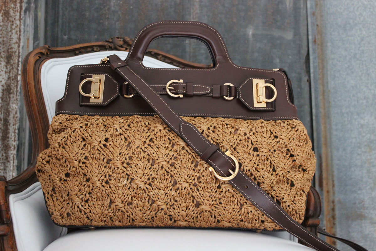 Ferragamo Natural Woven Top Handle Tote