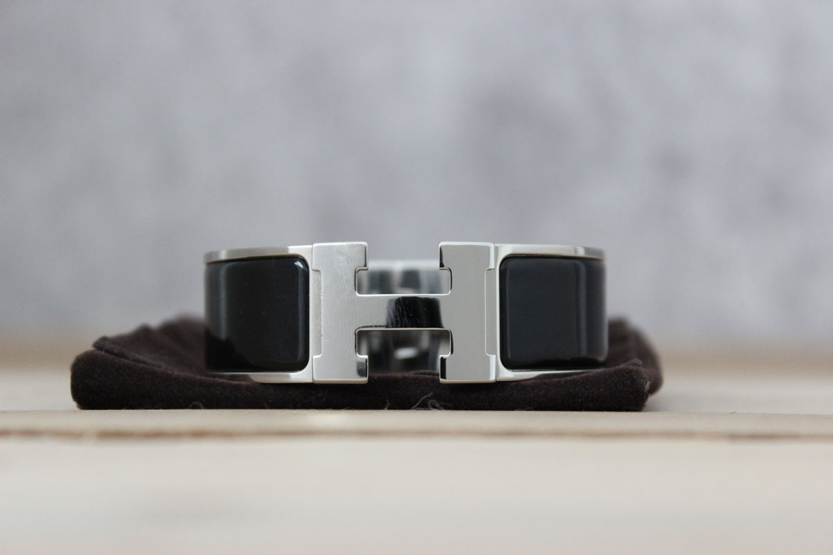 Hermes Clic Clac H Black Enamel Bracelet Wide PM