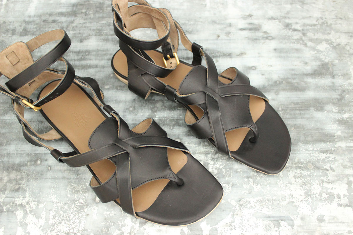 Hermes NEW Genese Veau Strappy Gladiator Thong Sandals 37