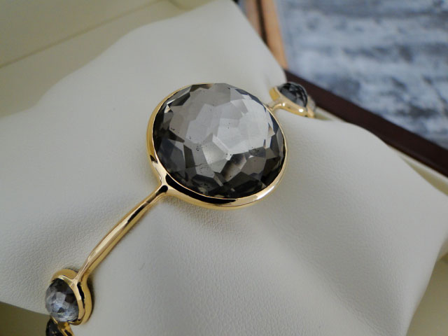 Ippolita multi-color gemstone toggle necklace. Hammered sterling silver links. Toggle closure. Clear quartz, Mother of Pearl and two other stones (unknown). Measures 19″ long. Comes with Ippolita pouch. In excellent condition.