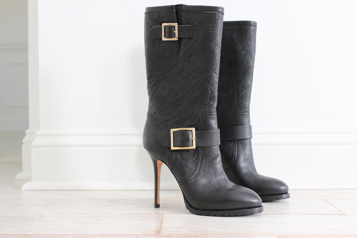 Jimmy Choo Black Leather Motorcycle Galen Stiletto Boots
