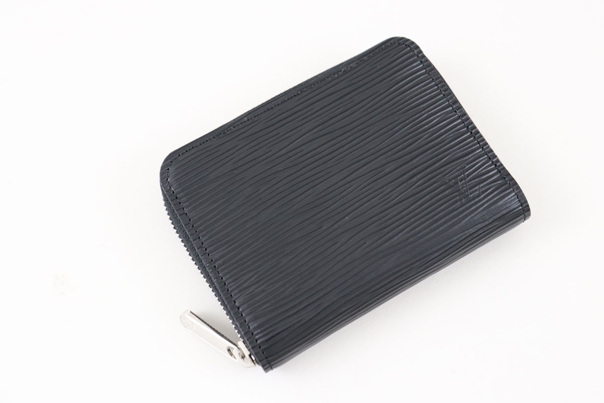 Louis Vuitton Black Epi Zippy Coin Purse. Black epi leather with silver-tone hardware and black cross-grain leather lining. Zip around closure, two gusseted compartments, two flat pockets, business card slot and four card slots. Measures 4.3″ x 3.3″ x 0.8″. Made in France. Date Code: BA1210. This zippy coin purse has never been used. No box. No dust cover.