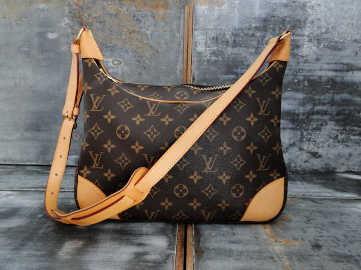Louis Vuitton Monogram Canvas BOULOGNE Shoulder Bag. Features monogram canvas, natural cowhide trim, golden brass hardware, zip closure and cross-grain leather lining with zippered pocket. This bag is in excellent pre-owned condition. Please see photos for best description. The interior including the pocket is immaculate. There is a mark on the leather trim on one corner and softening of the leather near the top where the strap attaches. The monogram canvas exterior is perfect. Comes with dust cover. Date Code/Authenticity: AS0065. Made in France. Measures 12″ x 11″.