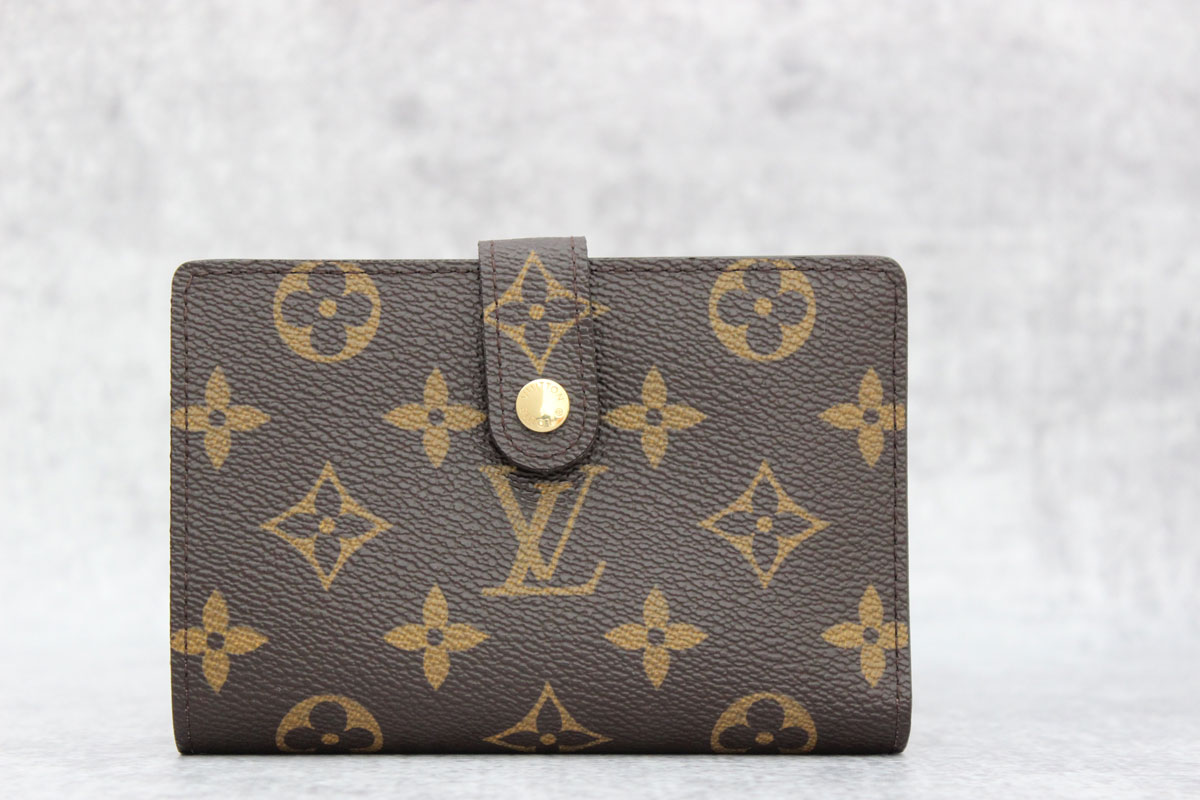 Louis Vuitton monogram canvas French Purse wallet. This wallet is in new condition and comes with dust cover and box. Features a snap closure, cross grain leather lining with eight card slots, one bill compartment, two pockets and a French-closure change compartment. Measures 5.1″ x 3.5″ x 0.4″. Date Code: MI3069. Made in France.