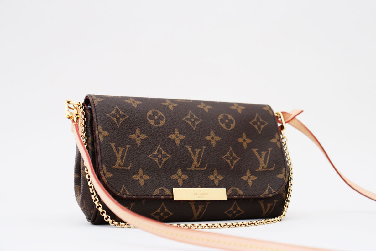 Louis Vuitton Monogram Canvas Favorite PM. Measures 9.5″ x 5.5″ x 1.6″. Made in France. There are some scratches on the front plaque. Otherwise excellent. Comes with dust cover.