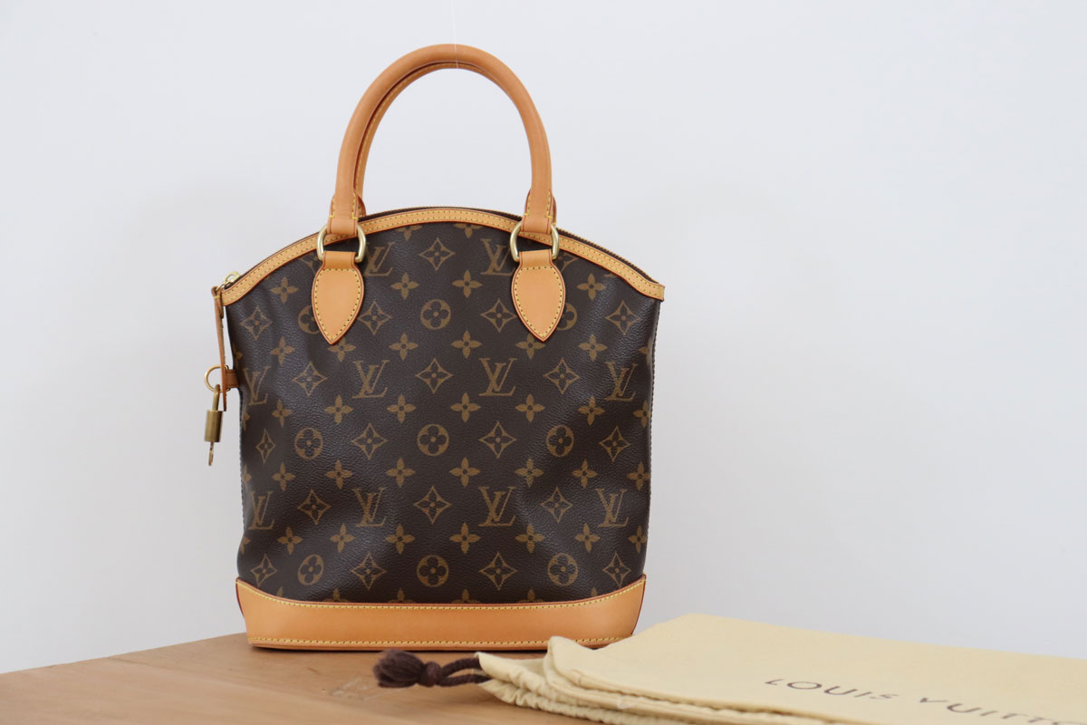 Louis Vuitton Monogram Canvas Lockit Vertical PM. Features monogram canvas, natural cowhide trim, rolled leather top handles, a zip top closure, leather base and textile lining with flat pocket and cell pocket. Measures 9.25″ (across base) x 11″ (down center) x 4.5″. Date Code/Authenticity: FL0066. Made in France. The leather including handles and base have a light and even patina. There are some minor marks on the handles. The hardware is shiny and scratch-free. The interior is immaculate. The padlock/key is brass and does have tarnishing. Overall excellent condition. Comes with dust cover, tag, padlock and key.