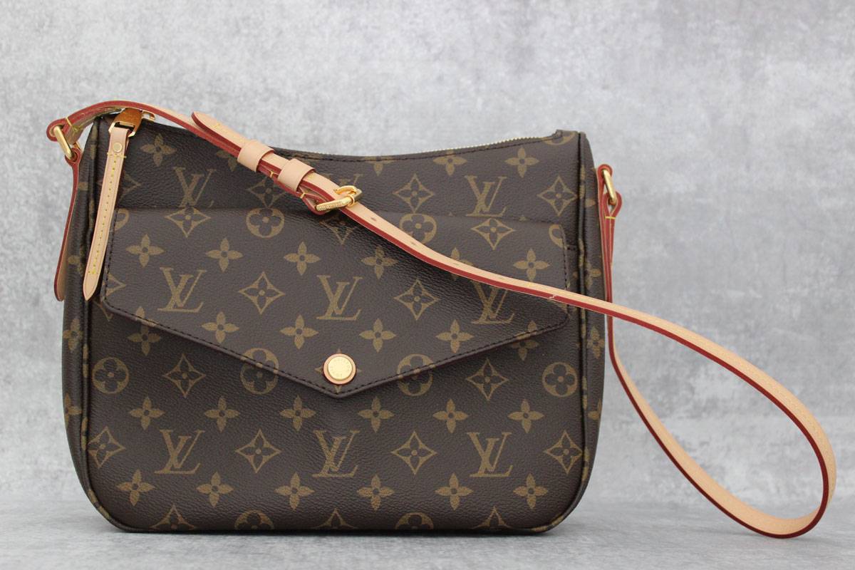 Louis Vuitton Monogram Canvas Mabillon Shoulder Bag. Features monogram canvas, adjustable shoulder strap, zip-top closure, front snapped compartment with additional slip-in compartment behind it and burgundy textile lining. STRAP HAS A DROP OF 13.5″ AT LONGEST LENGTH. STRAP HAS BEEN SHORTENED. IT CANNOT BE WORN CROSSBODY. IF YOU WANT THE CROSS-BODY STRAP LV CAN REPLACE IT FOR A COST OF $270. Measures approx. 10.5″ x 9.5″ x 3″. Made in Spain. Date Code: CA2186. Other than the strap being shortened, this bag is in new condition. It has never been carried. No dust cover but will be packaged with care.