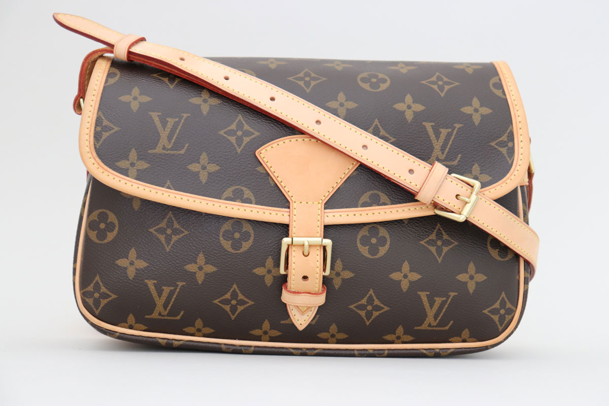 Louis Vuitton Monogram Canvas Sologne. Adjustable shoulder strap with removable pad. Can be worn as a cross-body or on the shoulder. Buckle front closure. Textile lining with two pockets. Measures 10.5″ x 7″ x 3.25″. Made in France. Date Code: TJ2192. This bag is in excellent condition. There are some light watermarks on the front leather trim and some very light rubbing along the edges. The monogram canvas is immaculate as is the interior. No dust cover.