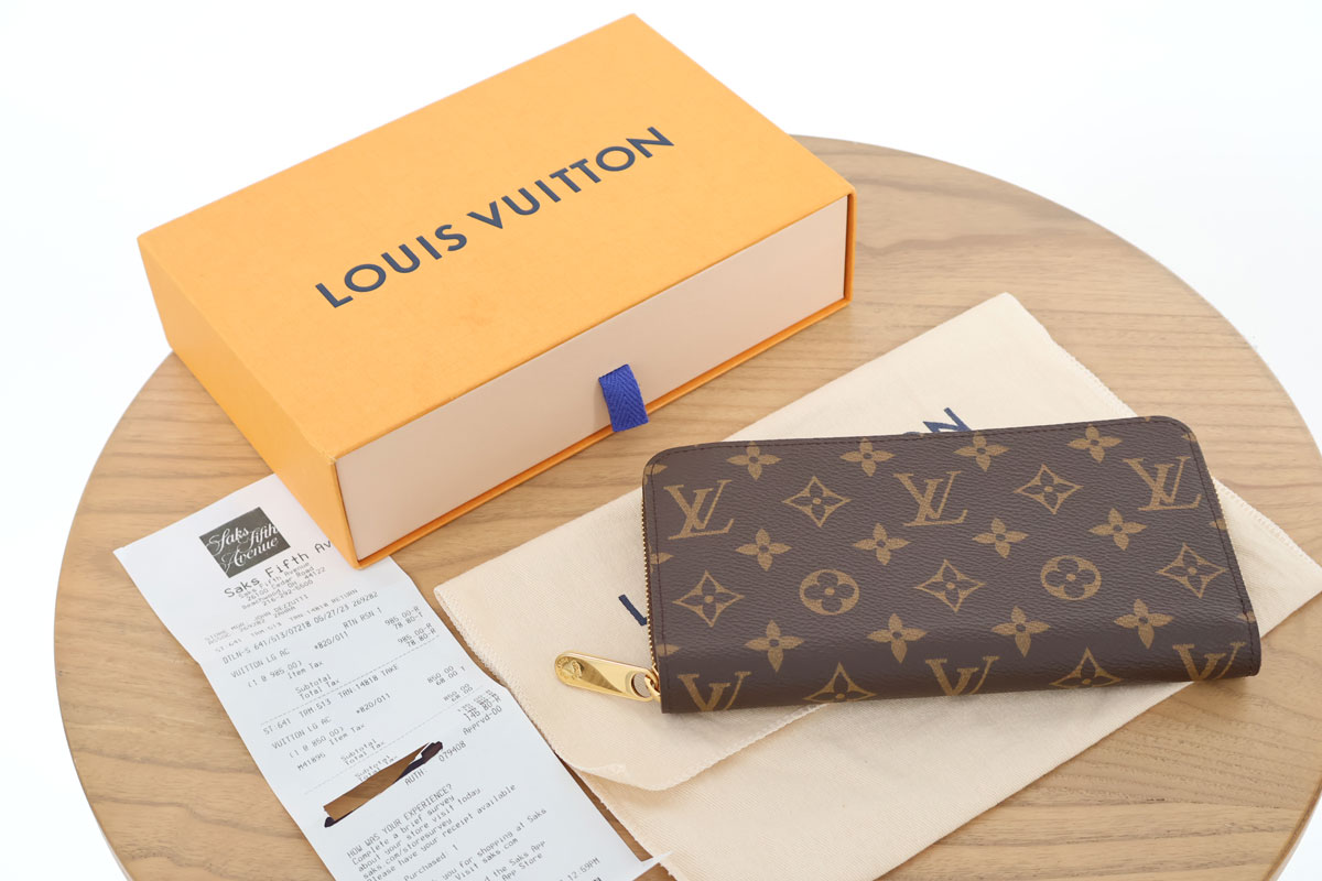 Louis Vuitton Monogram Canvas Zippy Wallet Fuchsia. Features monogram canvas with fuchsia leather lining. Zip around closure. Gold-toned hardware. 3 large gusseted compartments, an open compartment for bills, zipped coin pocket, 2 flat pockets and 12 card slots. Measures 7.7″ x 4.1″. Microchipped. This Zippy wallet was purchased less than four months ago and is in like new condition. Comes with box, dust cover and original receipt.