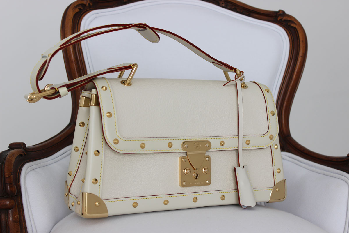 Louis Vuitton Suhali Leather Limited Edition Le Talentueux Blanc. This beautiful bag was purchased in 2005. It was never touched. Never taken out of the box until now. Plastic still covers the lock plate on the interior (see photo). Measures 12.5″ x 9″ x 4.5″. Date Code/Authenticity: DU1025. Made in France. The retail price was $2,900. PLEASE NOTE: WE NO LONGER HAVE THE BOX AS IT WENT TO THE BUYER OF THE BLACK VERSION WHICH WAS PACKAGED IN THE SAME BOX.