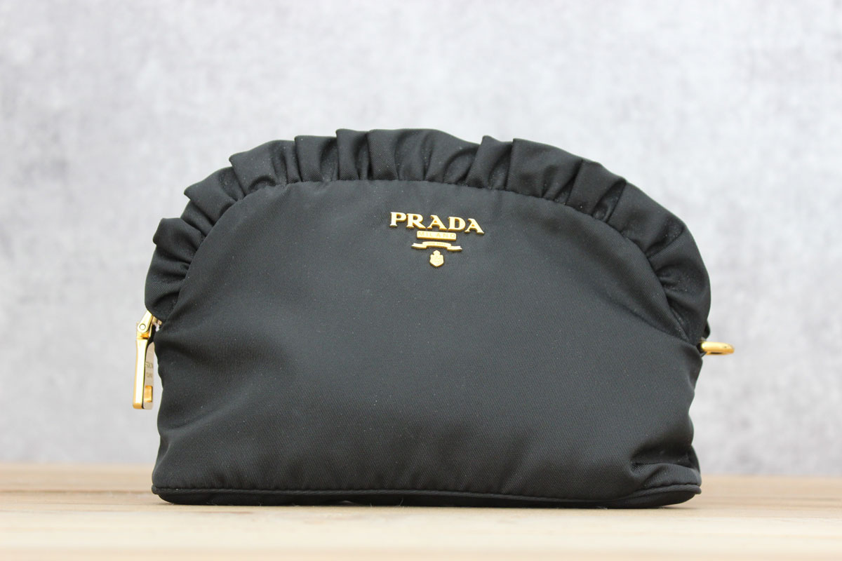 Prada black rubber pull-on, mid-calf rain boots. Approx. 1.5″ block heel. Prada emblem at sides. Black logo jacquard lining. Size 36. Fits US size 6. Pre-owned, gently worn. No box, no dust cover. Will be packaged with care.