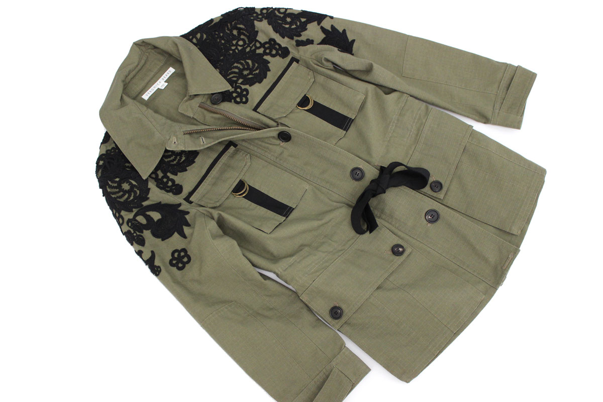 Veronica Beard Heritage lace-trim utility jacket. Green. Size 6. This jacket is in NEW condition.