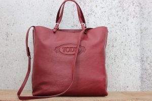 Tod’s Logo Media Shopping Tote Burgundy Leather