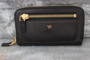 Tom Ford Black Leather Zip Detail Organizer Clutch Wallet