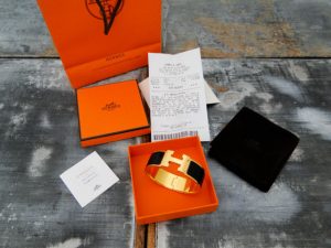 Hermes Clic Clac H Black Enamel Bracelet Wide PM