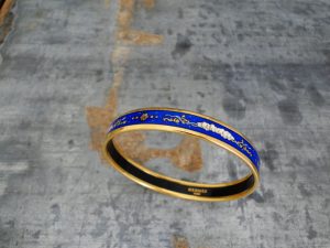 Hermes Blue Enamel Gold Plate COSMOS Bangle