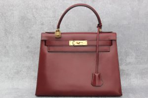Hermes 1980 Burgundy 28cm Kelly Bag