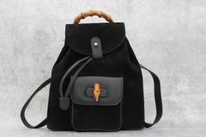 Gucci Black Suede & Leather Small Bamboo Backpack