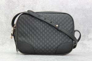 Gucci Black Leather Microguccissima Bree Cross Body Bag