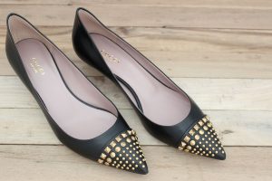Gucci Black Leather Low Heel Studded Pumps