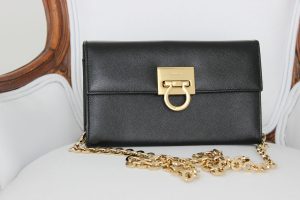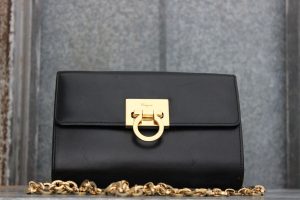 Ferragamo Black Smooth Calfskin Gancini Chain Shoulder Bag