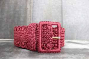 Dolce & Gabbana Dark Red Woven Raffia Wide Waist Belt Small