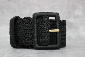 Dolce & Gabbana Black Woven Raffia Wide Waist Belt Small