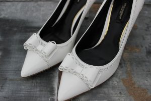 Dolce & Gabbana White Leather Bow Pumps 7.5