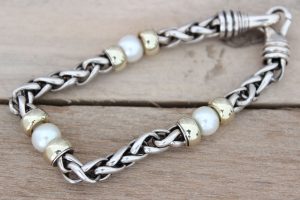 David Yurman SS & 14K YG Wheat Chain Pearl Bracelet