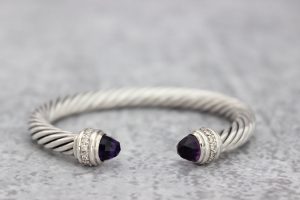 David Yurman 7mm Amethyst & Pave Diamond Cable Bracelet