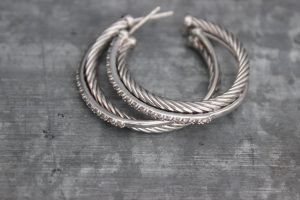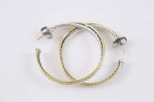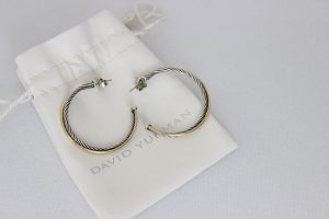 David Yurman Silver & Gold Crossover Hoop Earrings
