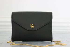 Christian Dior Vintage Black Leather Chain Strap Clutch Bag