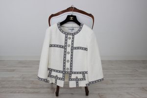 Chanel White Cotton Boucle Jacket with Pearls 36